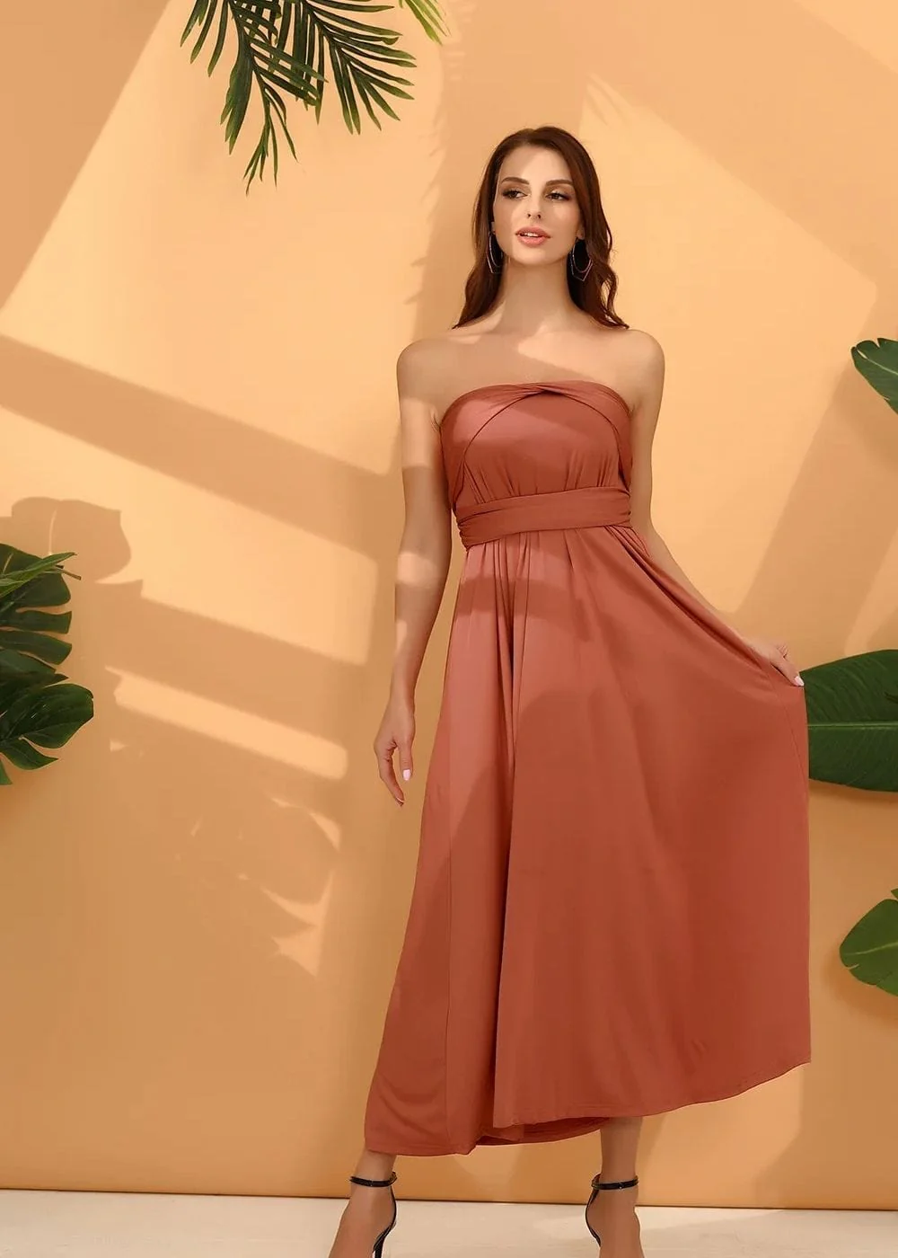 Imagine-toi glissant dans cette somptueuse Robe longue dos nu terracotta, idéale pour les soirées estivales. Sa couleur terracotta chaleureuse met en valeur ton teint avec élégance. La coupe sans bretelles et le dos nu apportent une touche sensuelle tout en gardant une réalité de simplicité chic. Le tissu fluide et léger accompagne chacun de tes mouvements, te garantissant une aisance incomparable.