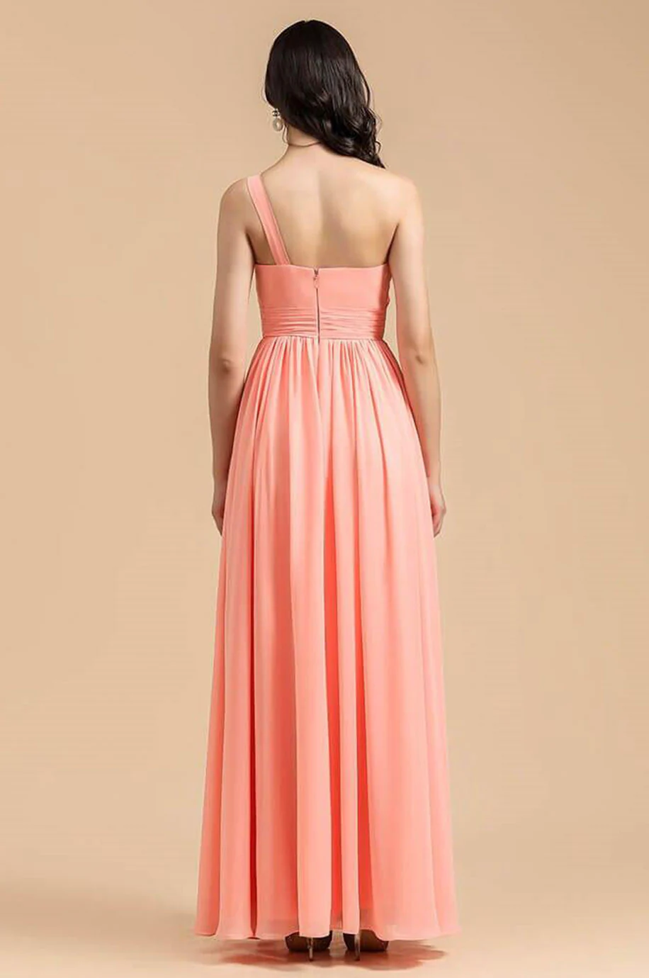 Soyez parfaite pour la cérémonie de mariage de votre copine. Discrète et originale, cette robe longue rose saumon viendra contraster la couleur blanche de la robe de la mariée et ajoutera de la gaité aux photos de mariage.