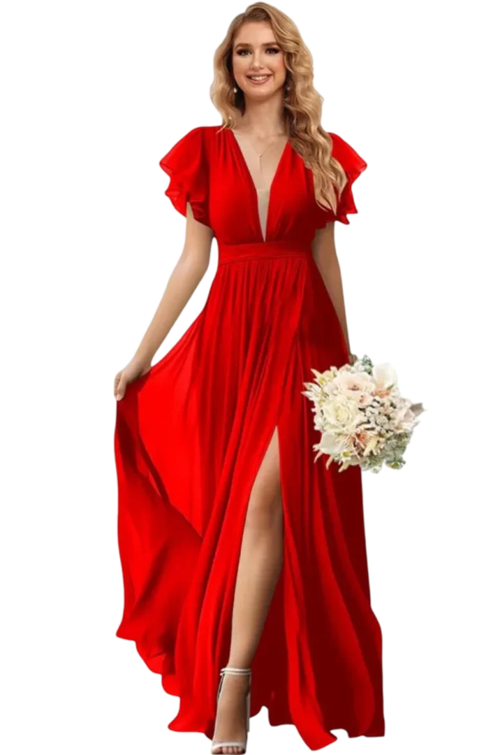 Admirez cette magnifique robe rouge pour demoiselle d’honneur, parfaite pour le mariage de votre copine