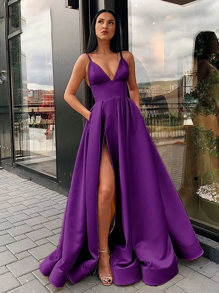 Confectionnée dans un satin lumineux et fluide, cette robe longue au coloris violet intense incarne le raffinement absolu. Sa coupe flatteuse à taille naturelle cintrée dessine une silhouette élancée, tandis que la jupe évasée à fente haute apporte une touche audacieuse et sensuelle. Dotée de fines bretelles spaghetti et d’un décolleté en V, elle met en valeur le haut du corps avec subtilité. Grâce à son soutien-gorge intégré, elle garantit un maintien optimal sans compromis sur le confort. Idéale pour les bals, soirées ou mariages.