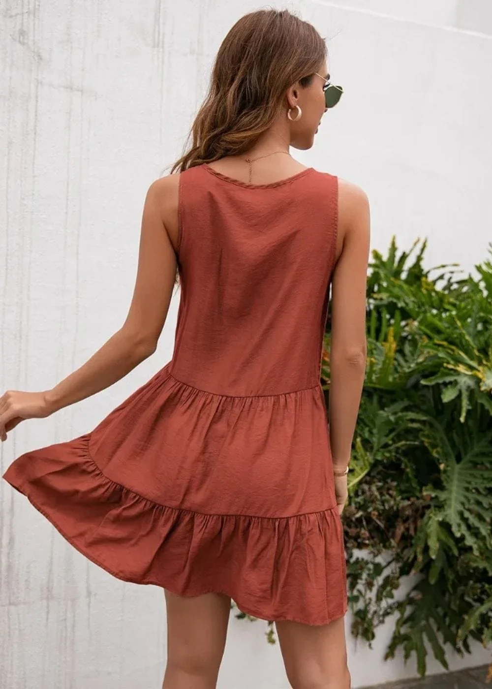 La couleur terracotta, chaleureuse et naturelle, évoque les ambiances chaleureuses du sud. Que ce soit pour une balade en ville ou une virée à la plage, cette robe est ta complice idéale. Grâce à ses volants délicats, elle danse au rythme du vent, ajoutant une pointe de mouvement à chaque pas.