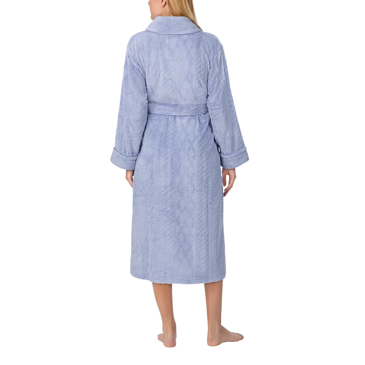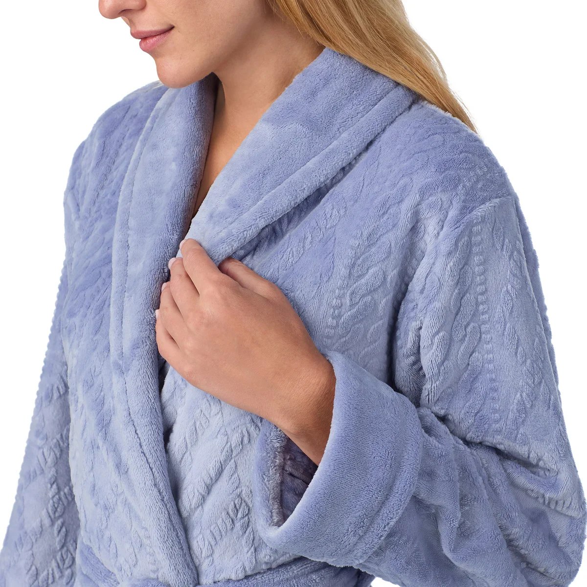 - Col châle et manches à revers en peluche soyeuse et douce.