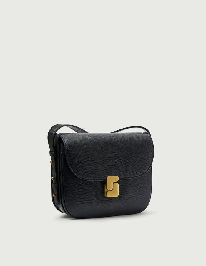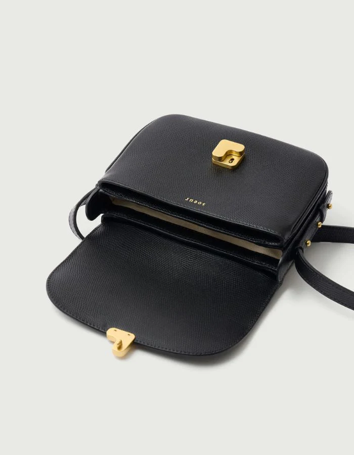 sac noir cuir Soeur, sac bandoulière mini, sac porté épaule femme, sac monogramme doré, sac cuir made in Maroc