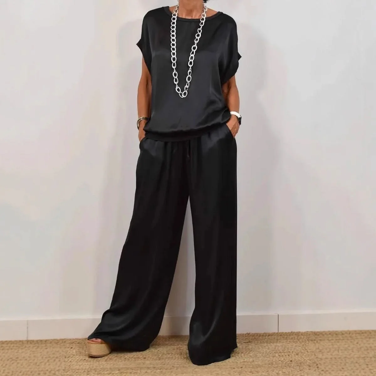 Découvrez le plaisir de porter une tenue en satin décontracté qui conjugue style raffiné et bien-être. Avec sa coupe fluide, sa taille haute flatteuse et son tissu satiné léger, cet ensemble épouse délicatement vos formes et assure une liberté de mouvement absolue. Offrez-vous le luxe d’un look naturel et élégant, tout en profitant du confort exceptionnel du satin décontracté au quotidien. Idéal pour mettre en valeur chaque femme, sans jamais compromettre la sensation de légèreté et d’aisance.
