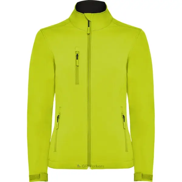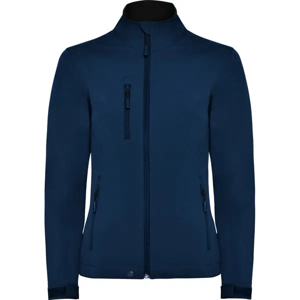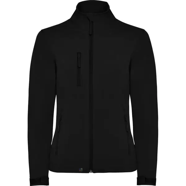 Softshell 2 couches.Fermeture éclair ton sur ton avec protection menton et curseur.Doublure intérieure en polaire.Poche extérieure sur poitrine côté droit avec zip et curseur ton sur ton.Deux poches extérieures avec zip et curseur ton sur ton. Cordon de serrage poignets avec velcro. Ceinture avec cordon élastiques et embouts.Coupe ajustée pour femme.