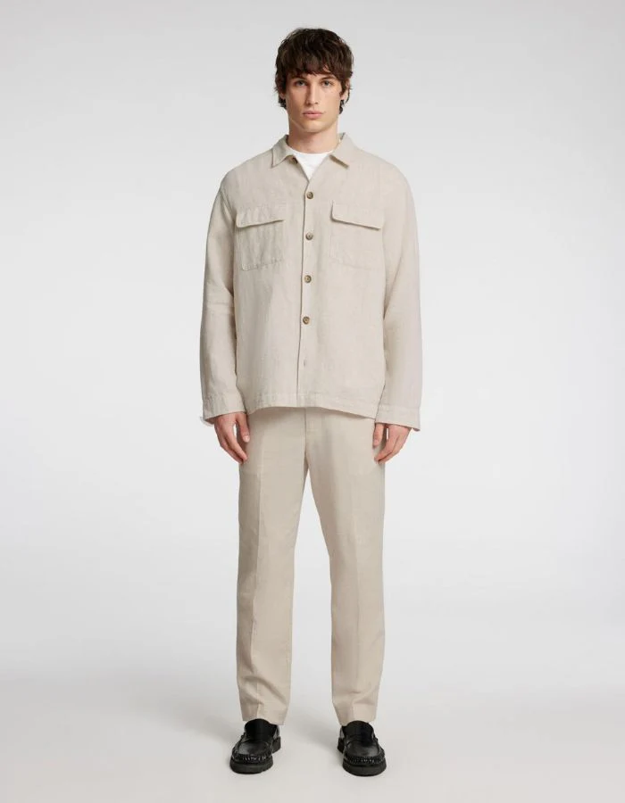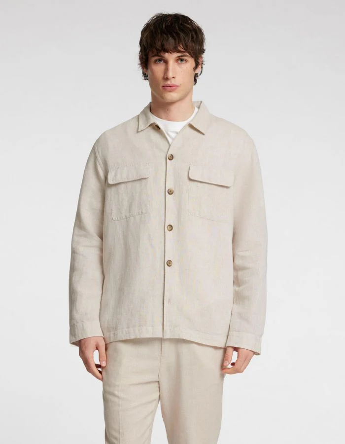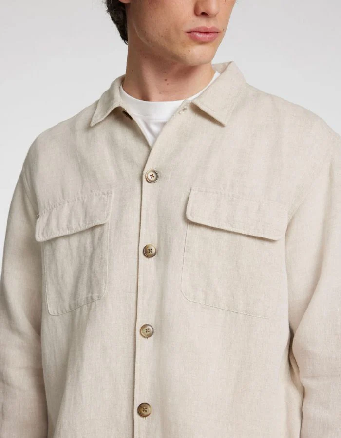 Cette surchemise en lin et coton recyclé est la pièce parfaite pour composer un look de mi-saison pratique et stylé. Légère, respirante et confortable, elle se porte aussi bien ouverte sur un t-shirt que boutonnée pour un effet chemise structurée. Son tissu texturé apporte un aspect authentique et naturel, idéal pour une allure décontractée et soignée à la fois.