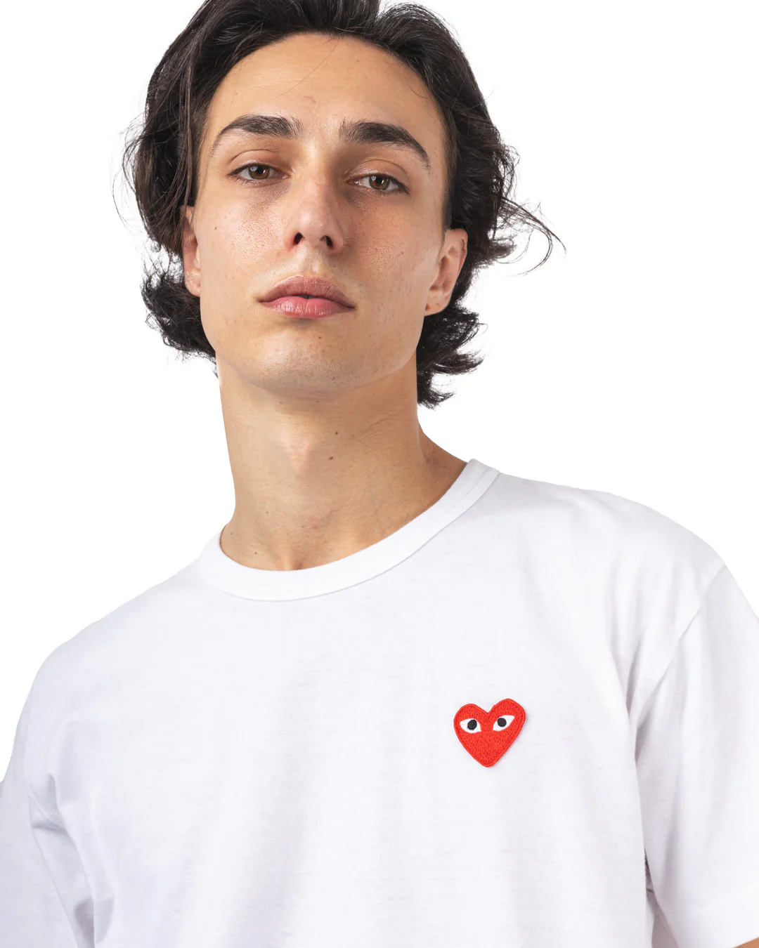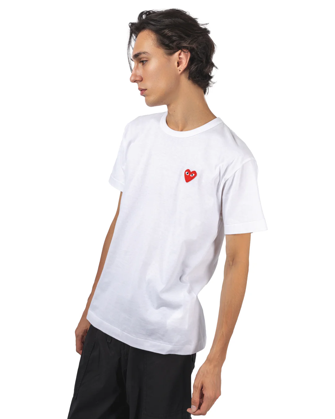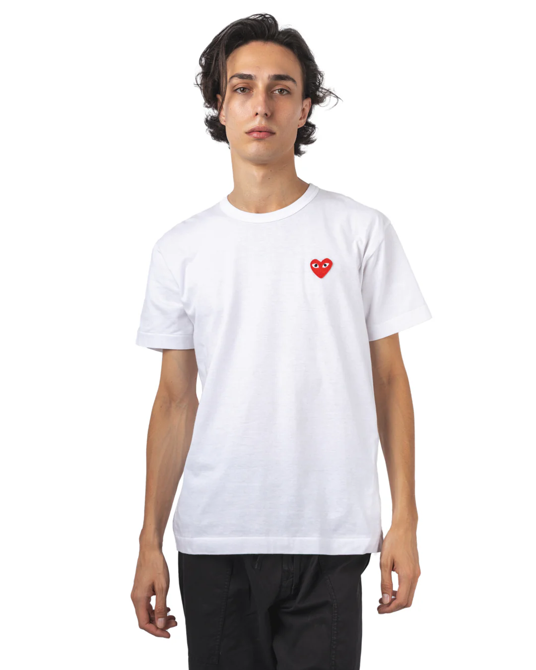 Le T-shirt Classic Red Emblem incarne parfaitement cette philosophie. Confectionné au Japon dans un jersey de coton dense et confortable, il arbore une coupe droite intemporelle. Le petit cœur rouge brodé sur la poitrine apporte une touche graphique subtile, emblématique de la ligne PLAY. Facile à associer, il s’impose comme un basique iconique du vestiaire contemporain.