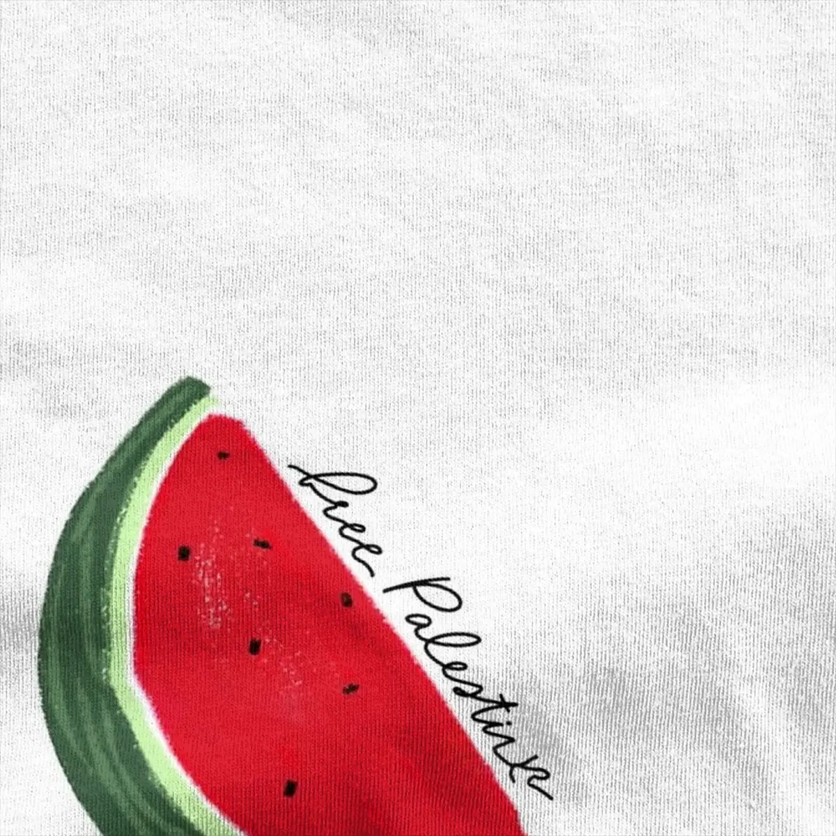 Le design met en avant une pastèque 🍉, symbole devenu universel de la Palestine et de la résistance pacifique. Ses couleurs rappellent le drapeau palestinien et incarnent l’attachement à une terre, à une culture et à un peuple qui refuse d’être effacé. Le message “Free Palestine” vient renforcer cette symbolique, avec sobriété et force.