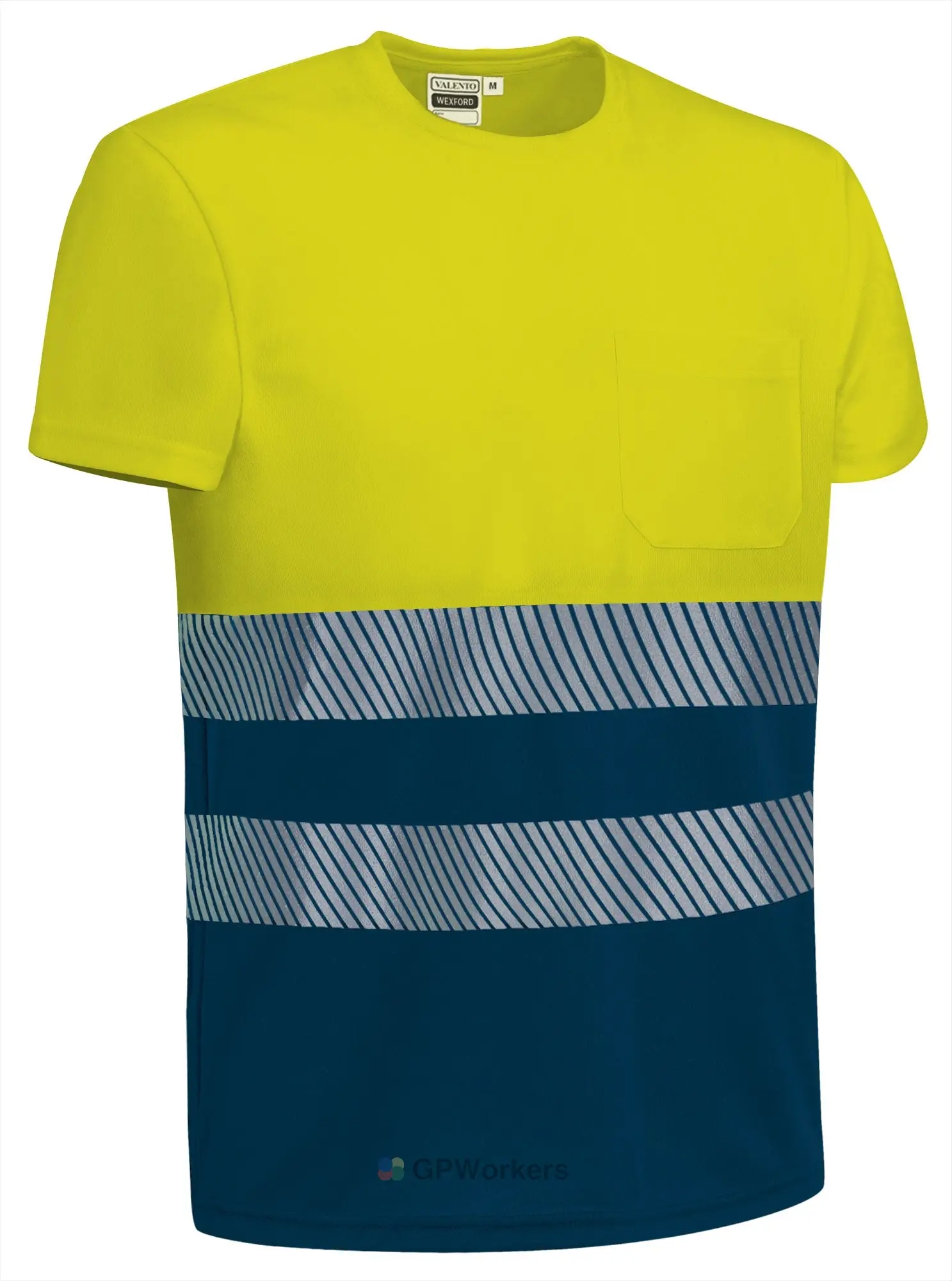 T-shirt bicolore haute visibilité, manches courtes et poche.