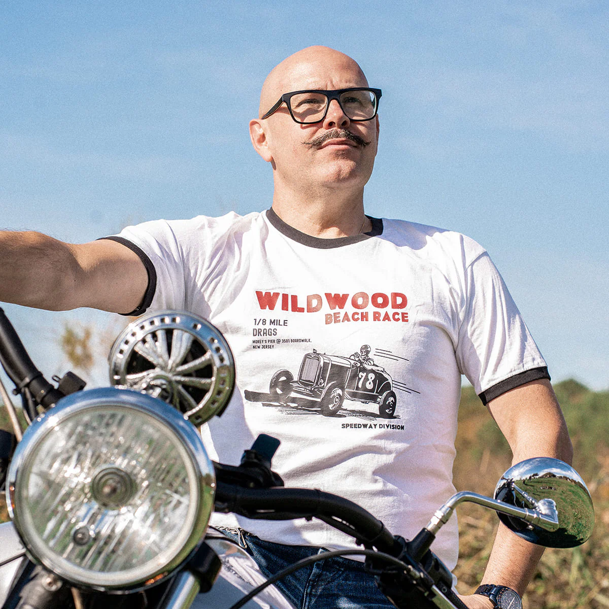 Le t-shirt ringer « WILDWOOD » de Motor Wheels Clothing rend hommage aux fameuses courses sur plage de Wildwood, New Jersey. Un événement où l’adrénaline et le style old-school se mêlent, entre hot rods, bobbers et esprit libre.
