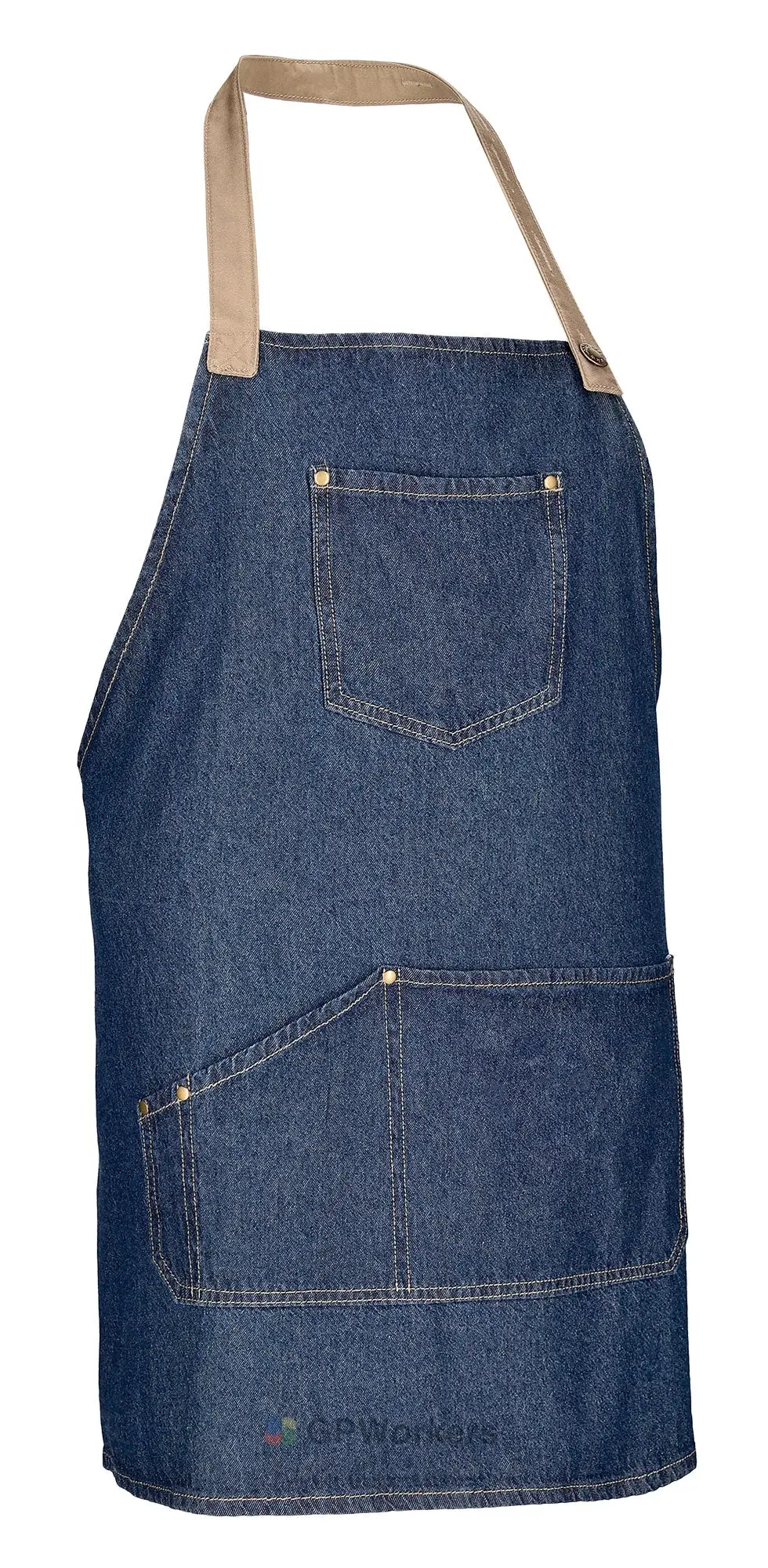 Tablier à bavette en jean multi-poches. Confectionné en tissu denim prélavé 100% coton doux et confortable. Rubans latéraux pour ajuster à la taille et large bretelle réglable par bouton pour accrocher au cou. Poche sur bavette pour faciliter le marquage et grande poche centrale avec compartiments pour tout avoir à portée de main. Contours avec […]