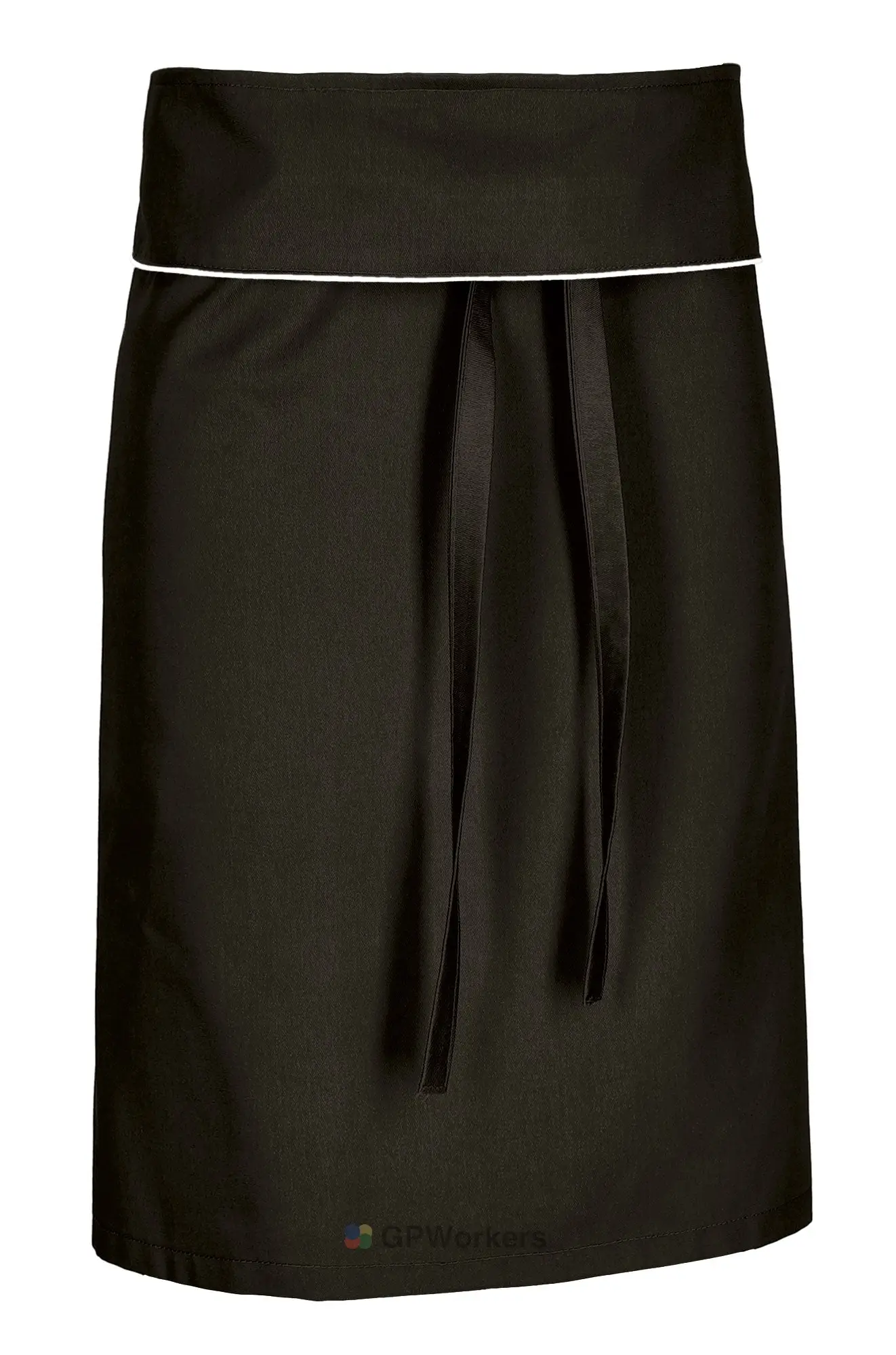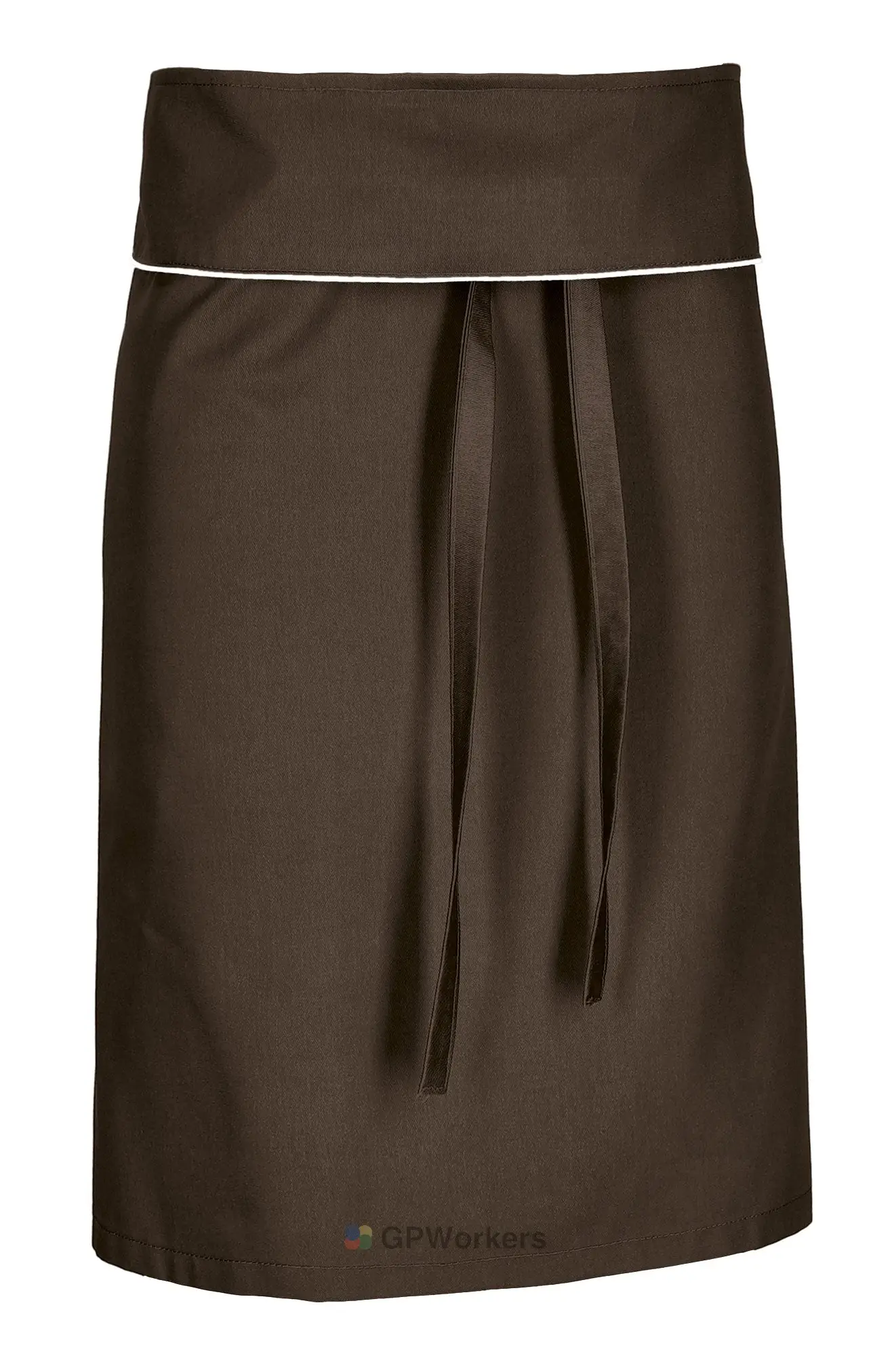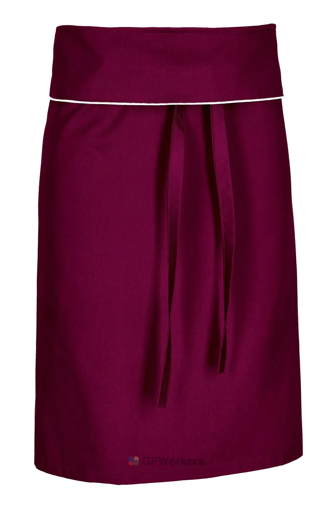Tablier long sans poches avec rubans cachés sous volant. Confectionné en tissu sergé mélange coton avec polyester résistant et durable. Rubans sur les côtés pour ajuster par un nœud à la taille. Ceinture avec volant, riveté de couleur et deux boutonnières occultes pour passer les rubans et cacher le nœud. Contour avec ourlet qui augmente […]