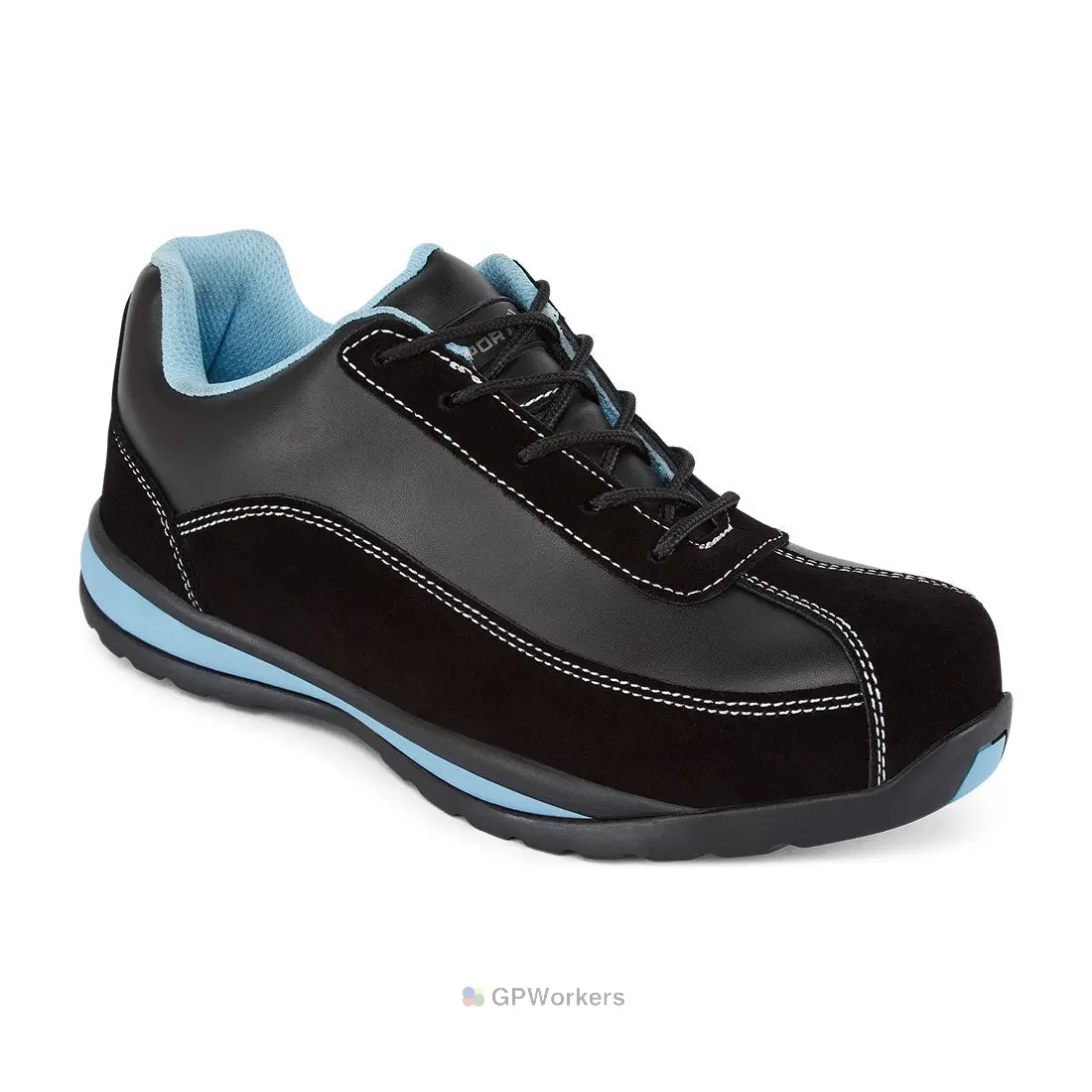 Un look moderne pour ce trainer S1P féminin aux coloris attrayants. Semelle EVA/Caoutchouc pour plus de confort et de résistance.