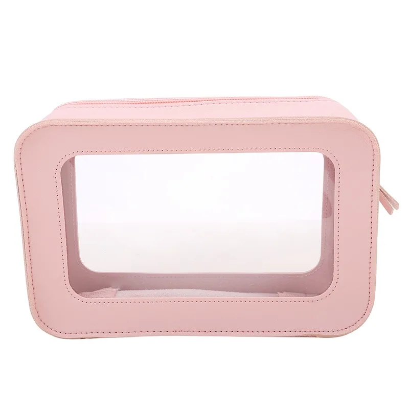 Cette trousse transparente est suffisamment chic pour l’afficher fièrement, avec sa construction en plastique et en cuir avec des accents dorées.