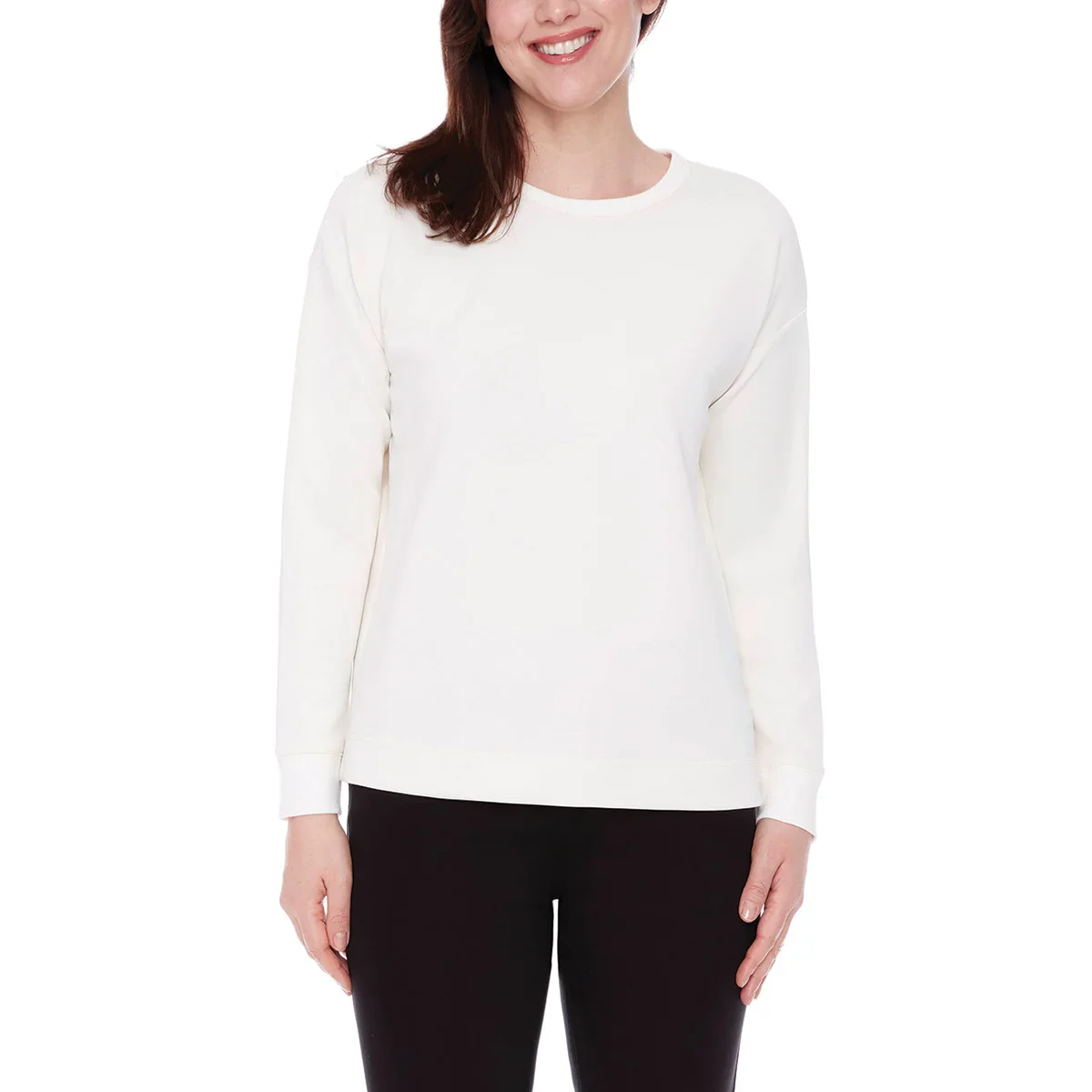 Caractéristiques: Tricot à base de TencelMC offrant une extrême douceur Peut se porter pour toutes les occasions Extensible et confortable Manches longues Encolure ronde ras du cou Polyester recyclé Couleurs: noir, ivoire, sarcelle ou brun Fabriqué au Cambodge Composition du tissu: 49% modal TencelMC, 45% polyester recyclé, 6% élasthanne Taille: P (4-6), M (8-10), G […]