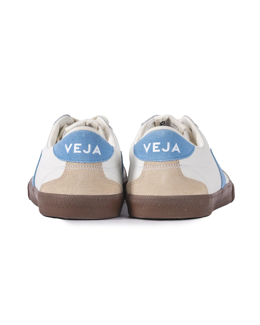 La Volley O.T. Leather s’inspire des chaussures de volley-ball brésiliennes des années 70, rééditant le tout premier modèle lancé par VEJA. Fabriquée en cuir Organic Traced (O.T.) provenant de fermes uruguayennes certifiées biologiques, cette sneaker offre une souplesse et une finesse remarquables. Les empiècements en daim et le logo « V » en caoutchouc d’Amazonie ajoutent une touche distinctive, tandis que la doublure en polyester recyclé et la semelle intérieure composée de caoutchouc d’Amazonie, d’E.V.A. biosourcé et recyclé assurent un confort optimal. La semelle extérieure, intégrant 40% de caoutchouc d’Amazonie, garantit une adhérence durable.