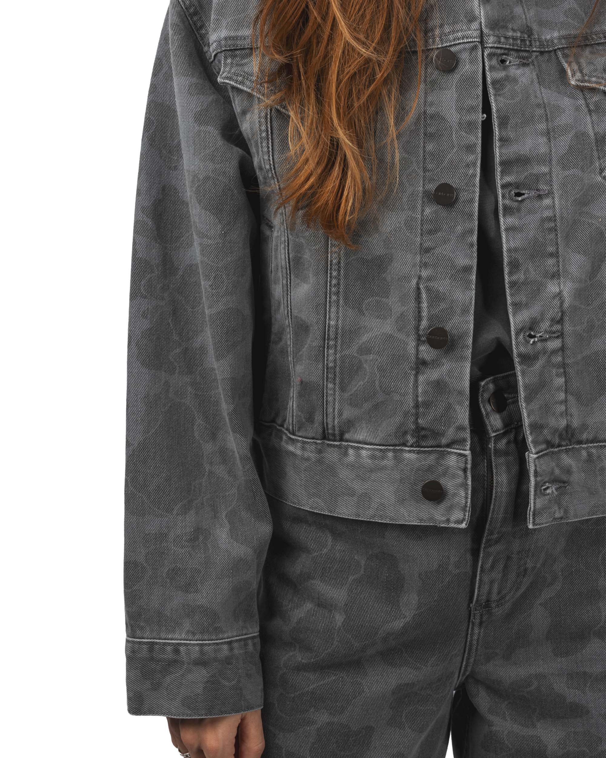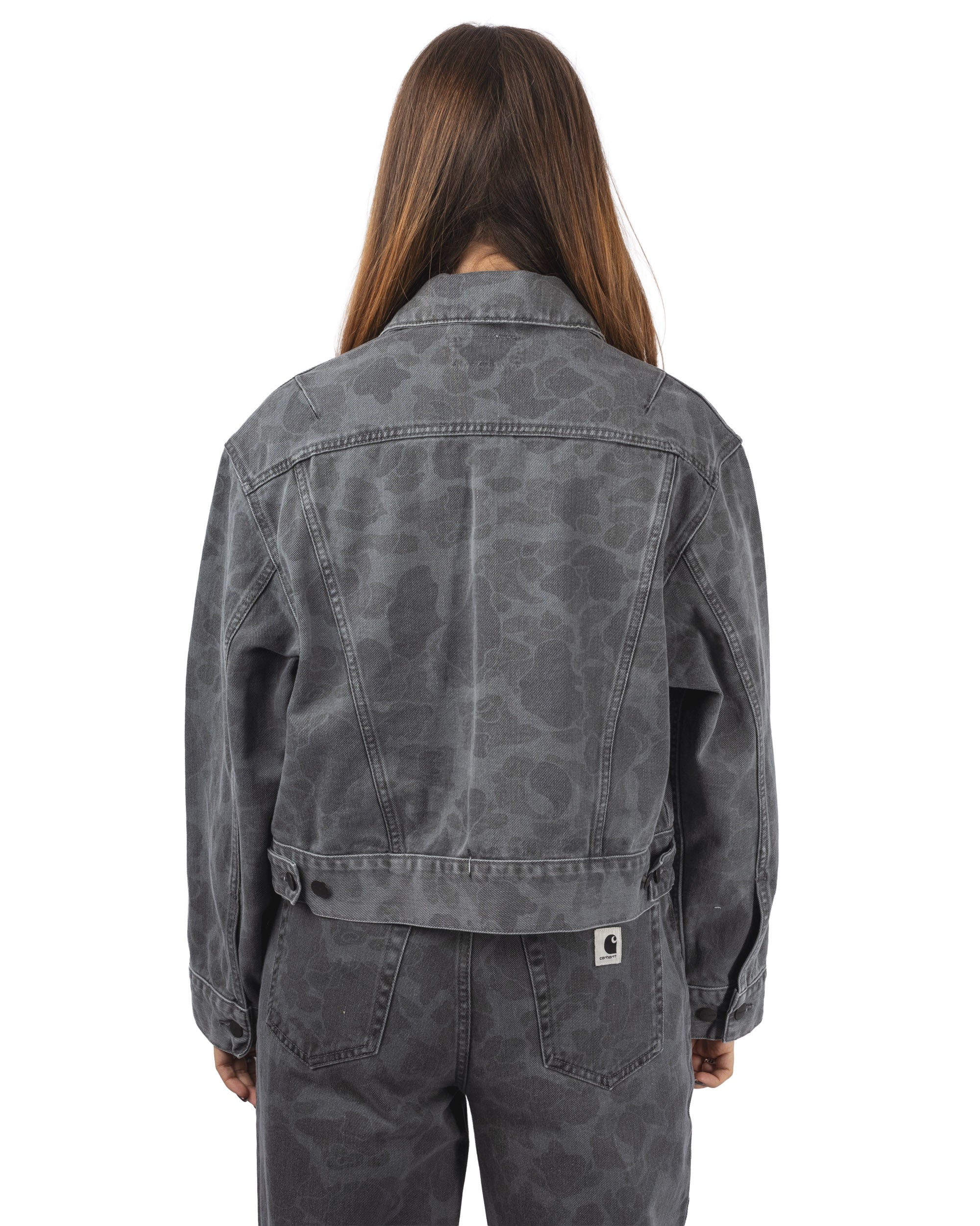 Fabriquée en toile de coton « Dearborn Canvas », un tissu emblématique de la marque reconnu pour sa résistance et sa texture authentique, cette veste adopte une coupe droite et courte, inspirée des vestes de travail classiques. Elle est dotée de poches plaquées à l’avant, d’une fermeture zippée dissimulée sous une patte, d’un col pointu structurant, et parfois d’un cordon de serrage interne pour moduler la silhouette. Le label Carhartt WIP cousu sur la poitrine signe la pièce avec discrétion.