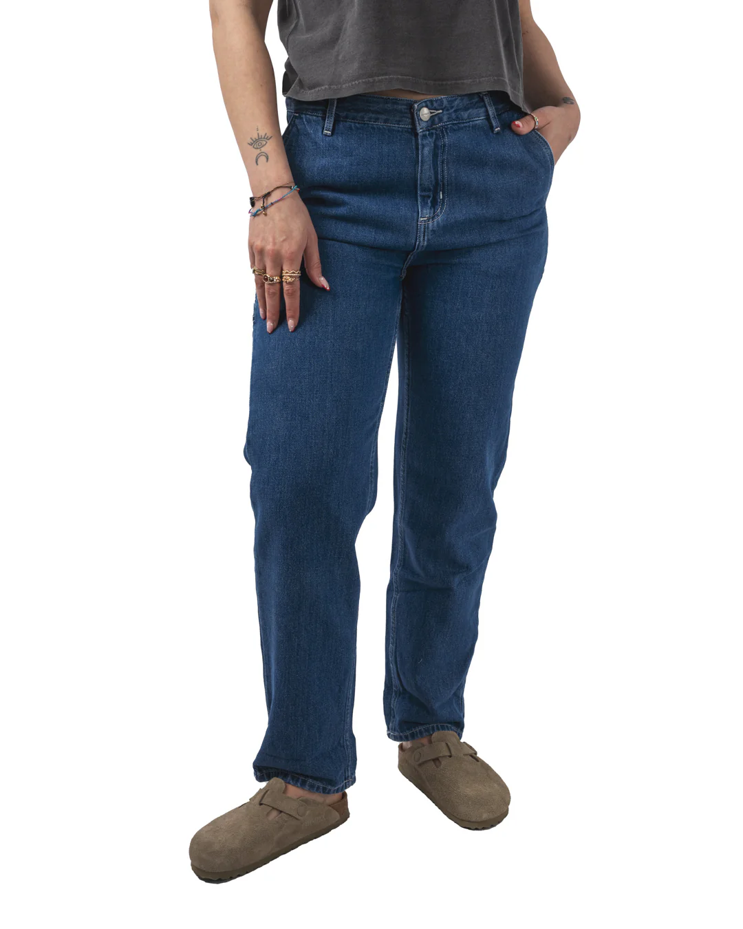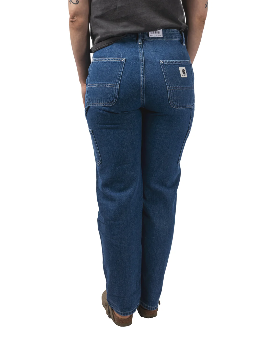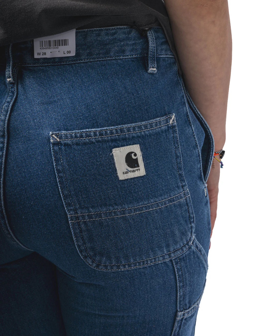 Le pantalon W’ Pierce est confectionné en denim bleu ‘Maverick’, offrant à la fois robustesse et confort. Inspiré des pantalons de travail classiques, il présente des détails utilitaires tels que des poches fonctionnelles et une boucle porte-marteau. Sa coupe boyfriend contemporaine, associée à une taille basse, assure une silhouette décontractée et tendance. Des surpiqûres contrastantes et une étiquette Carhartt WIP discrète sur la poche arrière droite complètent son esthétique.