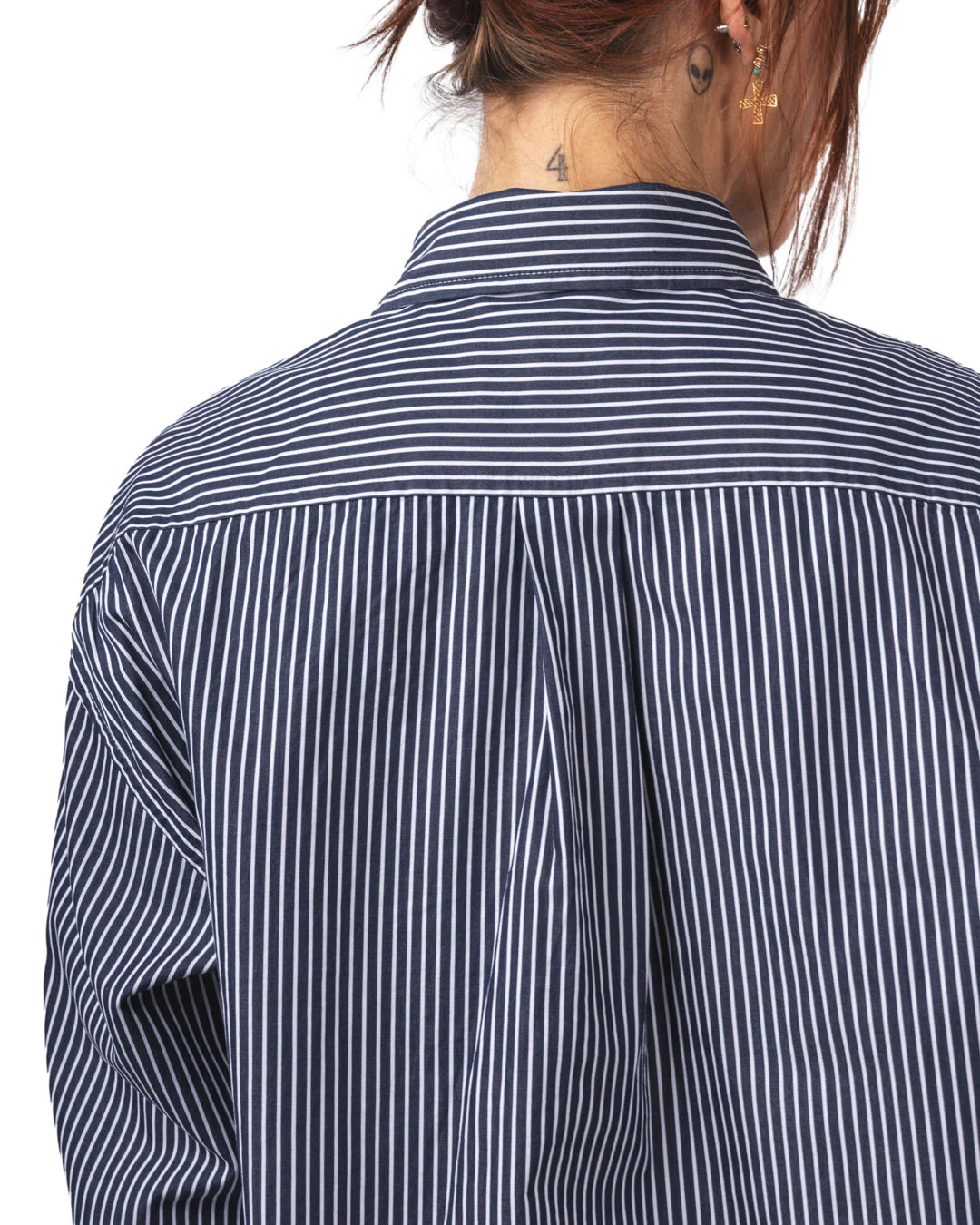 La chemise W’ L/S Arvin est confectionnée en popeline de coton légère de 3,9 oz, offrant une sensation de douceur et de légèreté. Elle présente une coupe oversize et arbore un motif à fines rayures verticales, apportant une élégance intemporelle. Une poche poitrine ornée d’un logo ‘C’ brodé ajoute une touche distinctive, tandis que les œillets brodés assurent une meilleure ventilation.