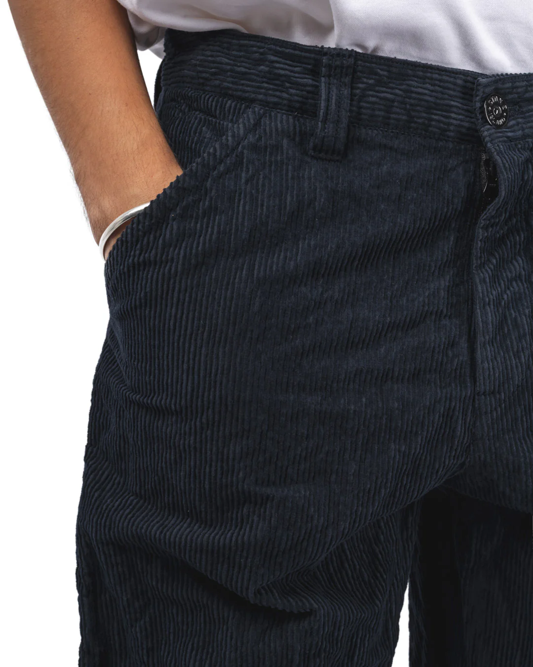 Le Wrinkled Corduroy 500-TC Pants illustre parfaitement ce savoir-faire. Confectionné en velours côtelé de coton ayant subi un traitement thermique à 500°C, ce pantalon présente une surface froissée distinctive. Sa coupe droite et ses finitions épurées — braguette zippée, passants larges, poches latérales classiques — en font une pièce facile à intégrer dans une tenue du quotidien, tout en conservant l’empreinte visuelle forte de la marque.