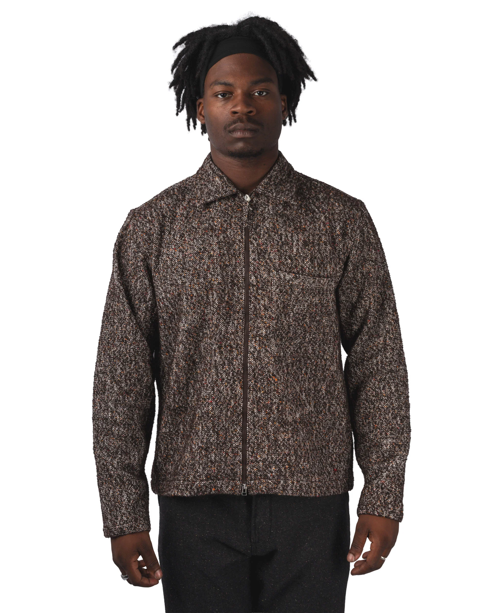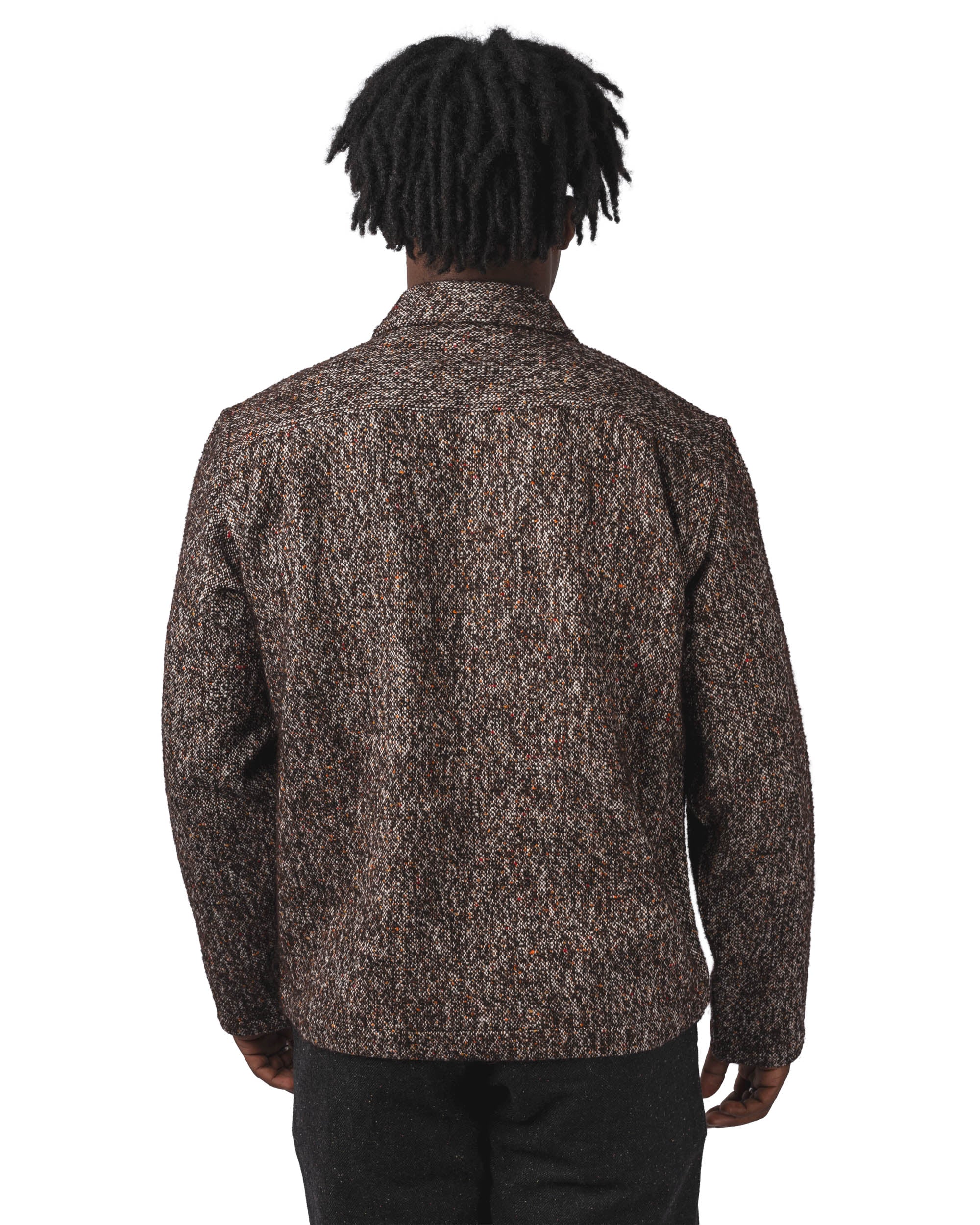 La Zip Sedona Tweed Shirt reflète cet esprit avec une surchemise zippée confectionnée dans un tissu tweed texturé. Sa coupe droite et décontractée en fait une pièce facile à superposer, tandis que la fermeture zippée et les poches plaquées ajoutent une dimension utilitaire. Le tweed, dense et résistant, confère chaleur et caractère à cette chemise hybride.