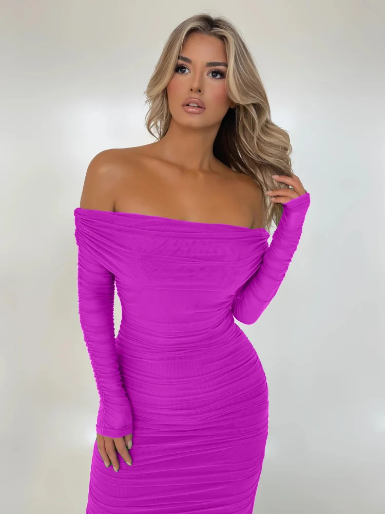 Robe violette épaule dénudée